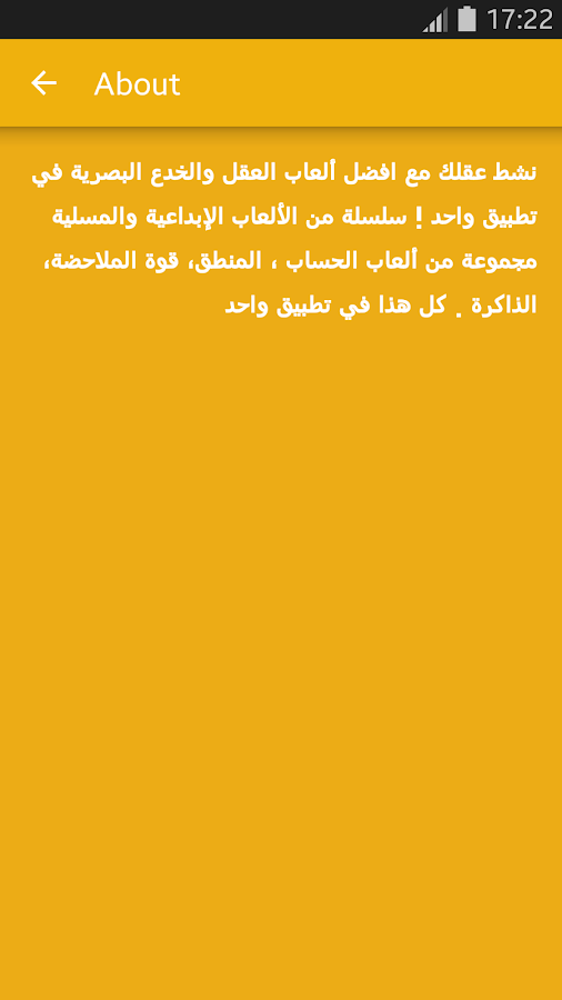 بحمد الله والصلاة والسلام على رسول الله سيدنا محمد عليه أفضل الصلاة وأذكى السلام وجدنا اليوم تطبيق جد مذهل ورائع , روعته ليست في جودة الجرافيك والرسوم ثلاثية الابعاد بل في فكرته وقدرته المدهشة على زيادة ذكاء الإنسان وتنمية تركيزه , فقد خلقنا المولى عزوجل من لحم ودم وعقلنا عبارة عن عضلة قلة تدريبها وتنميتها وإستخدامها قد تؤدي إلى ضمورها وهلاكها , لذا وجدنا في مملكة الاندرويد إننا بحاجة ماسة وخاصة في هذا العصر الذي أصبحنا نستخدم فيه الألات بأكثر مما نستخدم عقولنا إلى هذا التطبيق.