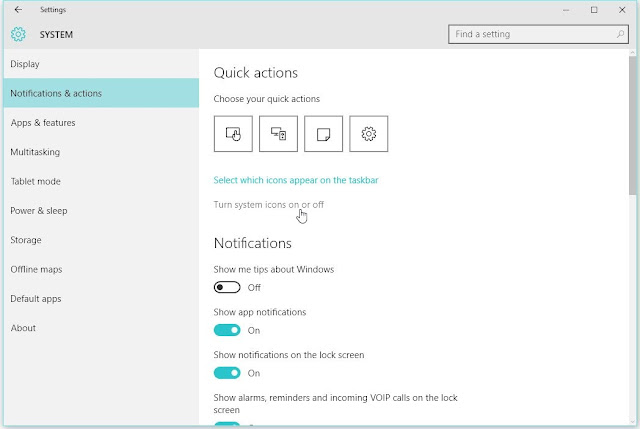إنتقل الى الاعدادات > ثم > النظام > ثم > الاشعارات والاجراءات > ثم نقوم بإيقاف خاصية [ إظهار تلميحات حول windows ]