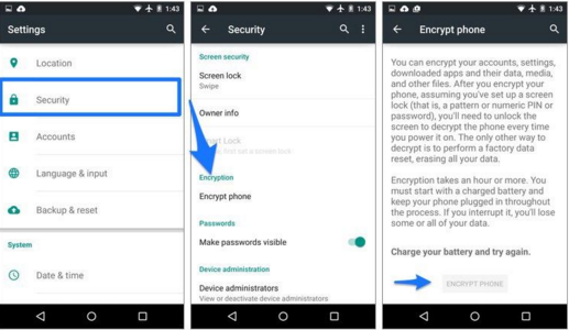 ولكن في الواقع، هناك العديد من الاشخاص القادرين على ارجاع البيانات الخاصة بك حتى في حال ضبط المصنع، لذلك سوف نقوم بتشفير البيانات الخاصة بك.