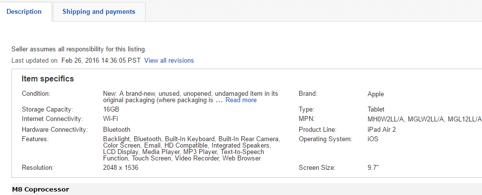 رابعاً : عرض مواصفات قدر الامكان للمنتج الذي تقدمه، وفي هذا نجد موقع ebay الشهير اكبر نموذج للمواصفات العالمية للتسويق.