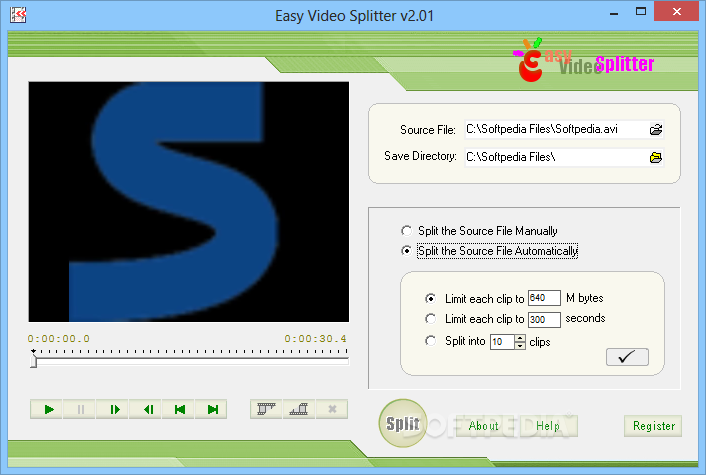 This small and useful application can split large AVI, MPEG, WMV or ASF videos into smaller, easy to handle segments of a specified size