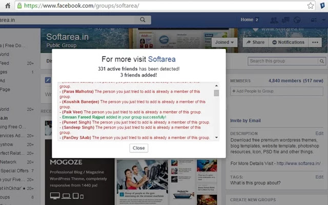 حيث تمنحك هذه الاضافة امكانية اضافة اصدقائك على قروب الفيسبوك بنقرات بسيطة، ودون اي تدخل منك، ما عليك سوى الضغط على رمز الايقونة الموجودة في أعلى المتصفح.