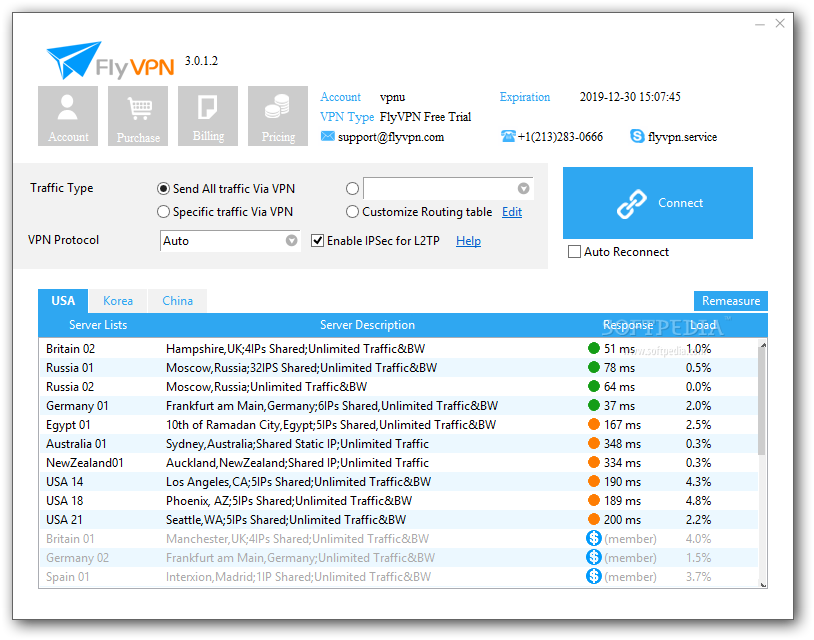 The installation procedure is rapid and uneventful, and does not need special attention from the user. Once it finishes, you can access the program to view the clean and intuitive interface by logging in with your FlyVPN account.