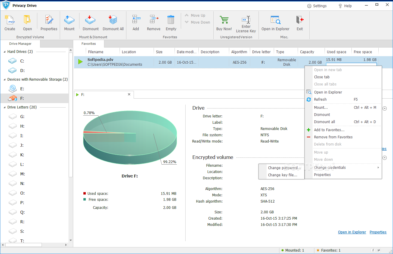 برنامج تشفير الملفات Privacy Drive يتميز بواجهة مستخدم بسيطة جداً، وسهلة الاستخدام، ويتيح لك بسهولة التعامل معه من خلال اختيار مُحرك الاقراص الذي تود تطبيق عليه عملية التشفير.
