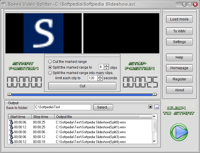 Speed Video Splitter is an application designed to help you split a video file into multiple pieces and, if necessary, convert them into a different format.